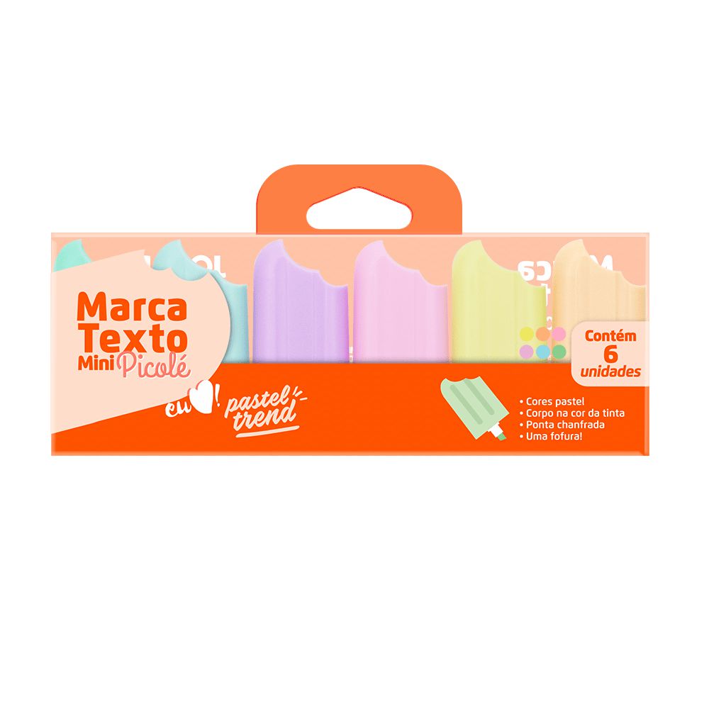 Marca texto formato picole - tons pasteis